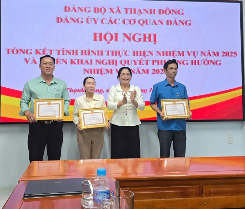 Chiều 28/12/2025 vừa qua Đảng Ủy các cơ quan Đảng long trọng tổ chức Hội nghị tổng kết công tình hình thực hiện nhiệm vụ năm 2025 và triển khai Nghị quyết phương hướng nhiệm vụ năm 2026. Tham dự hội nghị có đồng chí Lê Trường Kế - Bí thư Đảng ủy, đồng chí Huỳnh Thị Thanh Yến, Phó bí thư Đảng ủy- Chủ tịch HĐND xã; đồng chí Nguyễn Kim Thúy- Ủy viên thường vụ- Chủ tịch Ủy ban MTTQ VN xã Thạnh Đông; đồng chí Phan Thị Biết, Phó Chủ tịch Hội đồng nhân dân; đồng chí Võ Thị Thùy Trang- Trưởng Ban xây dựng Đảng; , cùng các đồng chí đảng viên các cơ quan đảng cùng tham dự.