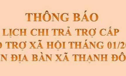 THÔNG BÁO LỊCH CHI TRẢ TRỢ CẤP BẢO TRỢ XÃ HỘI THÁNG 01/2026 TRÊN ĐỊA BÀN XÃ THẠNH ĐÔNG