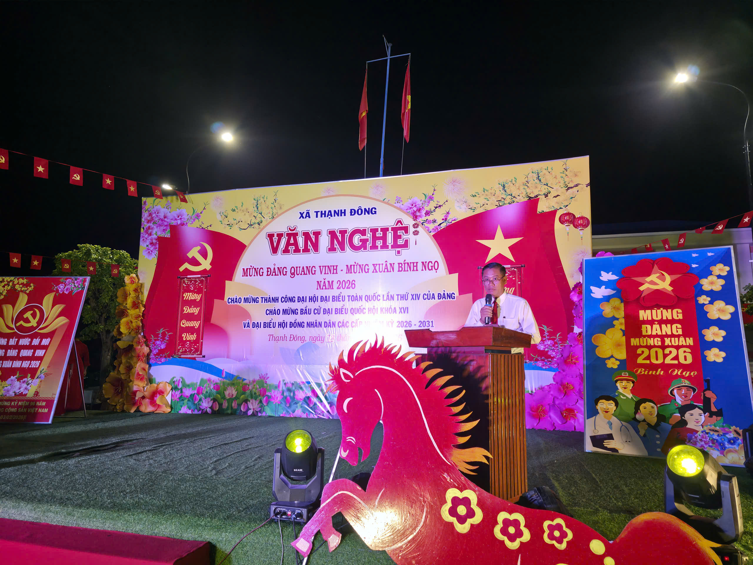 Thiết thực chào mừng thành công Đại hội Đại biểu toàn quốc lần thứ XIV của Đảng, chào mừng bầu cử đại biểu Quốc hội khóa XVI và Hội đồng nhân dân các cấp nhiệm kỳ 2026 - 2031, xã Thạnh Đông đã trang trọng tổ chức chương trình hội diễn văn nghệ chào mừng thành công Đại hội Đại biểu toàn quốc lần thứ XIV của Đảng, chào mừng bầu cử đại biểu Quốc hội khóa XVI và Hội đồng nhân dân các cấp nhiệm kỳ 2026 - 2031 và mừng Xuân Bính Ngọ 2026.