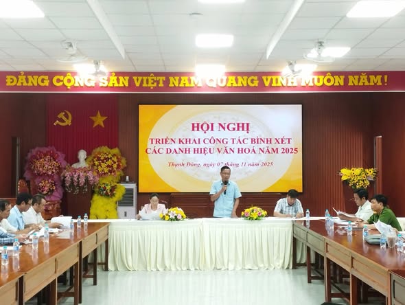 Ngày 07/11/2025 Ủy ban nhân dân xã Thạnh Đông tổ chức Hội nghị triển khai bình xét các danh hiệu văn hóa năm 2025 trên địa bàn xã Thạnh Đông. Hội nghị do đồng chí Dương Quang Đáng, Phó Chủ tịch UBND xã, Trưởng Ban Chỉ đạo phong trào "Toàn dân đoàn kết xây dựng đời sống văn hóa" xã chủ trì. Tham dự Hội nghị có đồng chí Nguyễn Kim Thúy, Chủ tịch UBMT TQ xã, thành viên Ban Chỉ đạo Phong trào xã, Trưởng ấp và Trưởng Ban công tác mặt trận các ấp trên địa bàn.