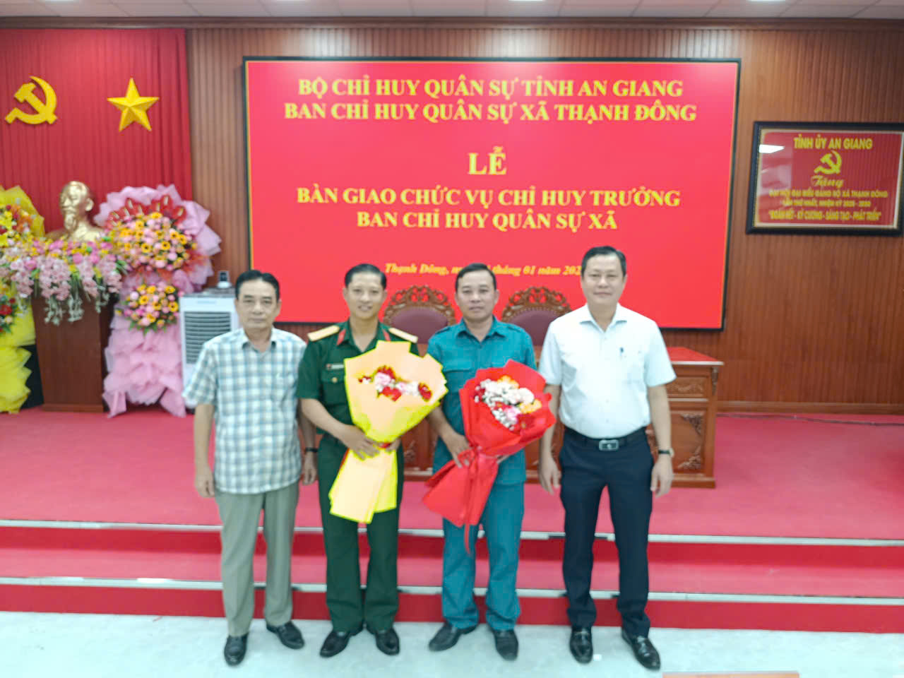 Tại buổi lễ đã công bố Quyết định số 04/QĐ-QK9 ngày 10/01/2026 của Tư lệnh Quân khu 9 về việc điều động cán bộ, bổ nhiệm đồng chí Đặng Hoàng Giang giữ chức vụ Chỉ huy trưởng Ban Chỉ huy Quân sự xã Thạnh Đông; Quyết định số 147/QĐ-UBND ngày 12/01/2026 của Chủ tịch UBND tỉnh An Giang về việc miễn nhiệm Chỉ huy trưởng Ban Chỉ huy Quân sự cấp xã đối với đồng chí Nguyễn Quyền.